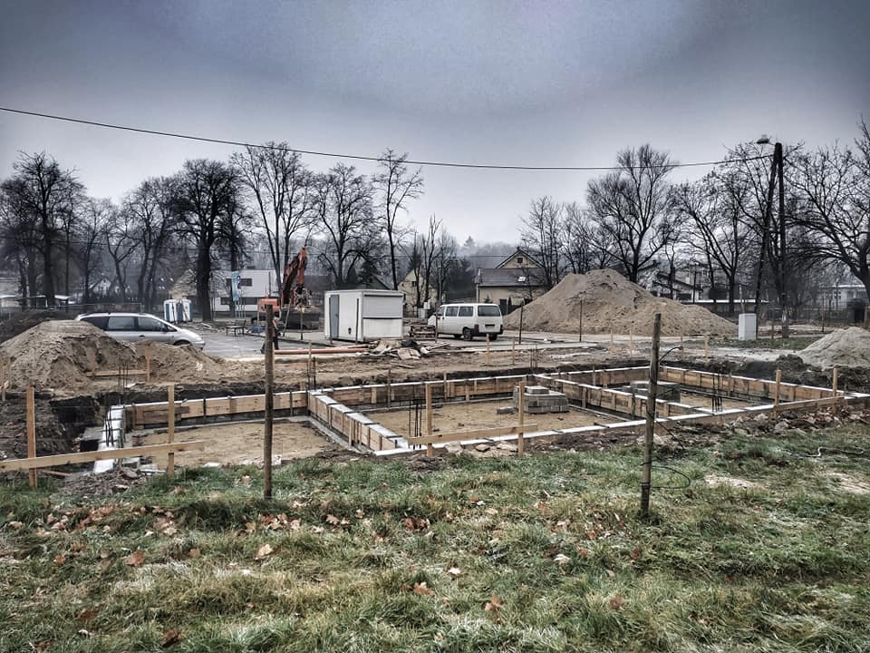 Już nie ma śladu po obiekcie pamiętającym lata 70’ ubiegłego stulecia. Na miejscu starego budynku powstał fundament, na którym wybudowane zostanie piękne Centrum Przesiadkowe.