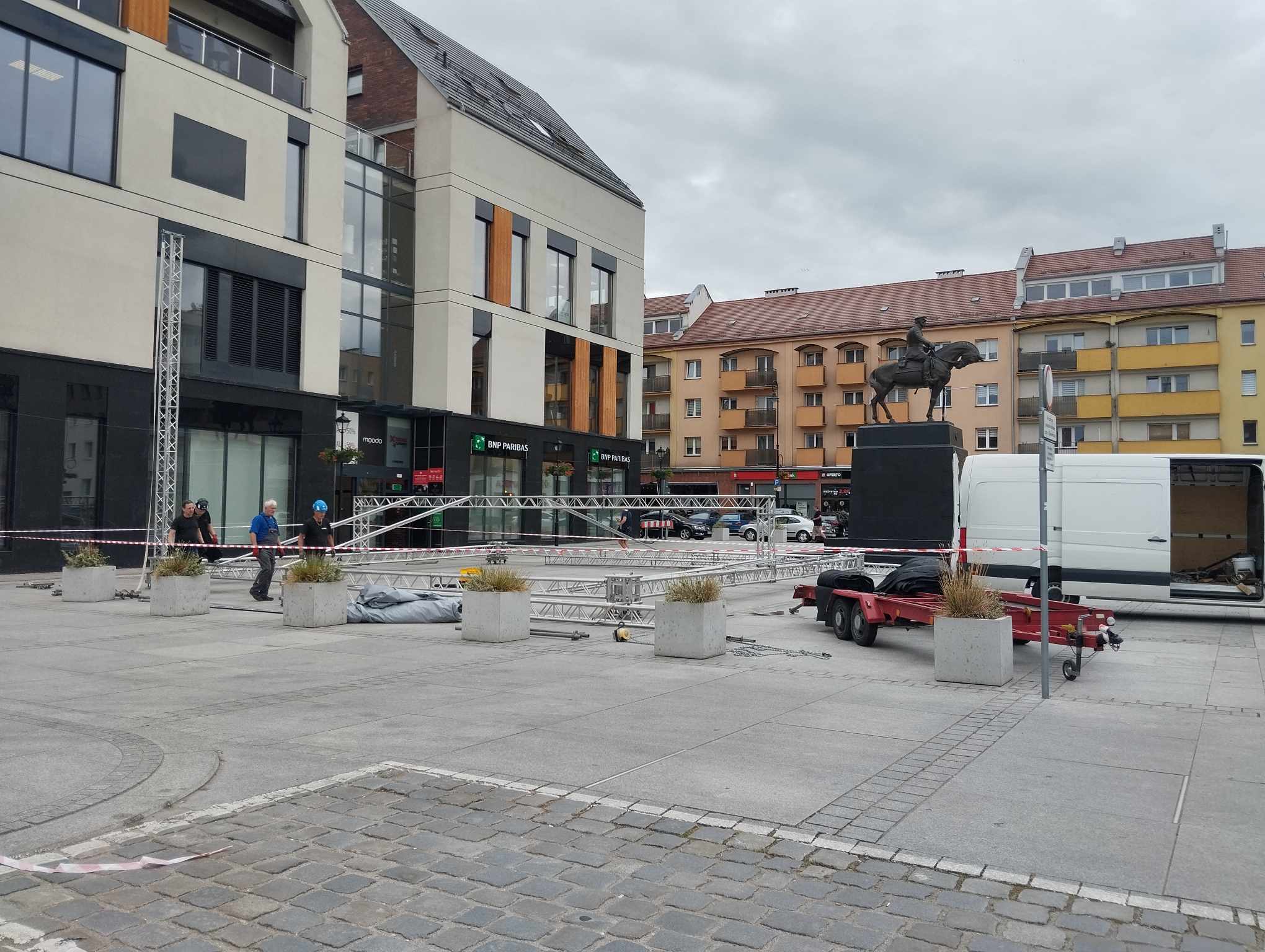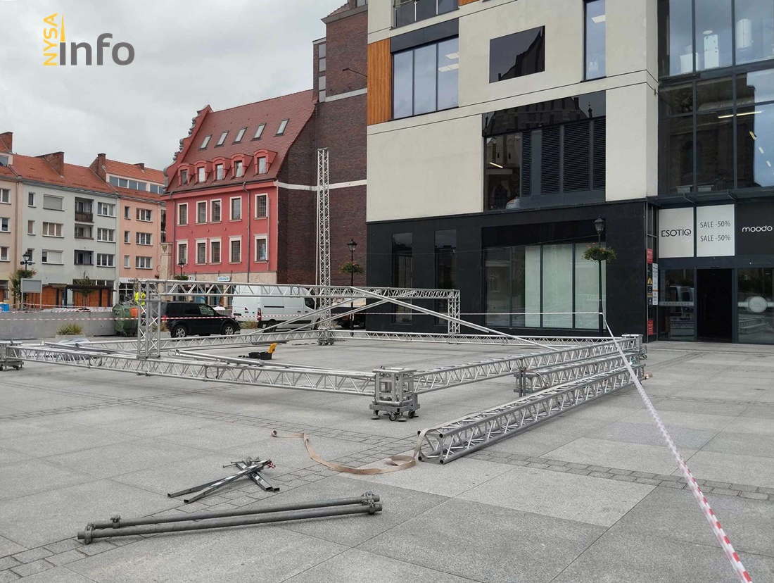 Na nyskim Rynku już pojawiły się kramy, stoiska, a przy ratuszu rośnie scena. Ta część miasta jest także wyłączona z ruchu kołowego. Trwają przygotowania do Dni Nysy 2024.