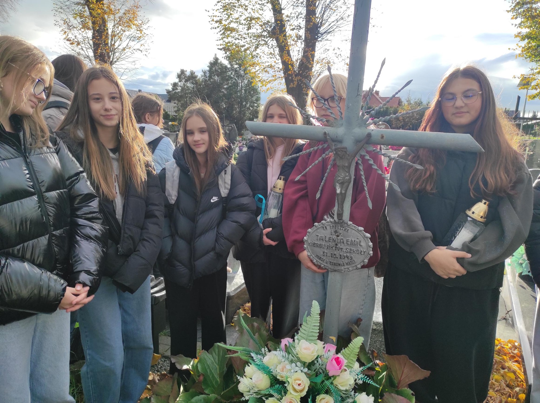 Na koniec uczniowie odwiedzili także grób Emila Talenty, który był kierownikiem naszej szkoły od roku 1946. Akcja przebiegła w spokojnej i pełnej zadumy atmosferze. Dla naszych wolontariuszy była to z pewnością lekcja szacunku dla tradycji i poszanowania miejsca pamięci o zmarłych. Dziękujemy wszystkim za poświęcony czas i zaangażowanie w akcję.