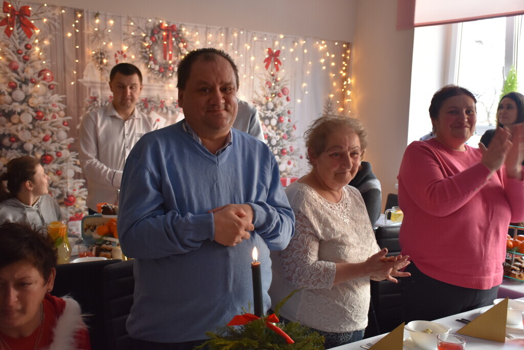 Atmosfera była pełna wzruszeń i serdeczności, a wspólne kolędowanie, które nastąpiło po życzeniach, wprowadziło wszystkich w świąteczny nastrój.