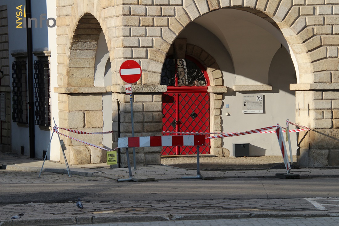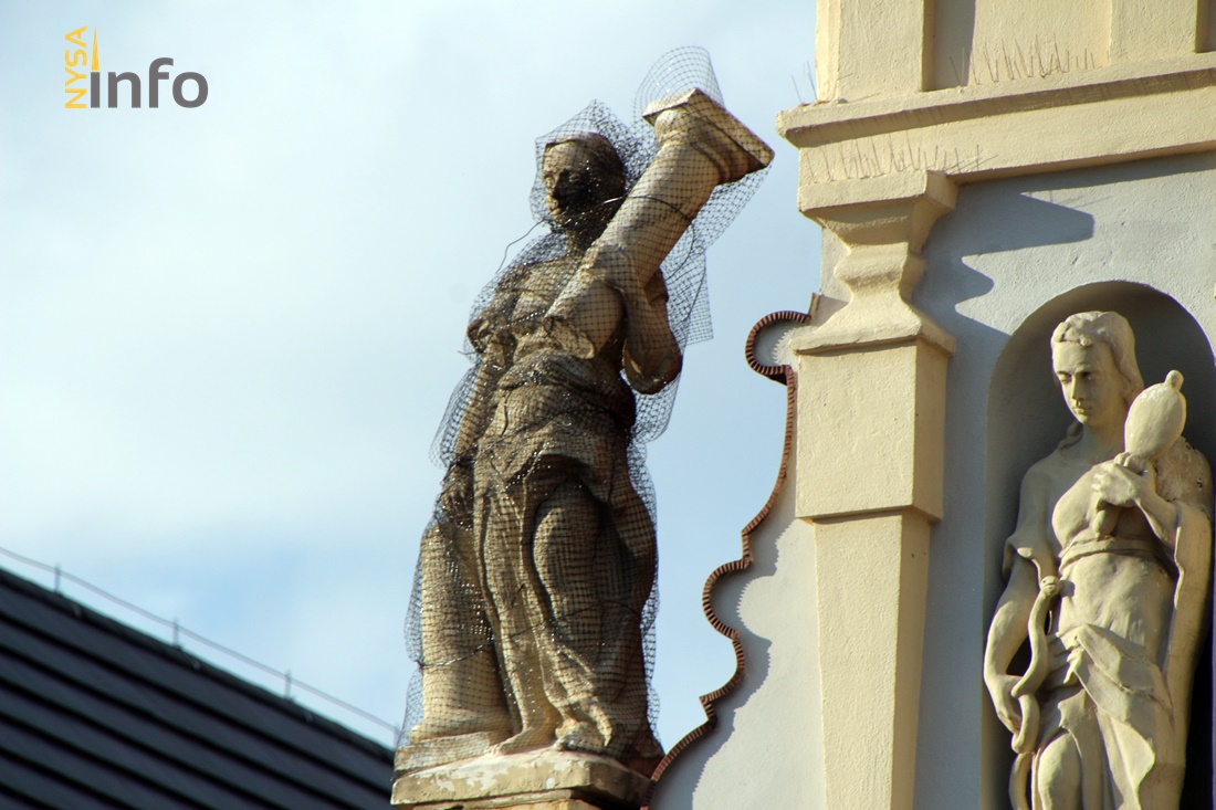 Spacerując po nyskim Rynku trzeba omijać obecnie rejon Domu Wagi Miejskiej w Nysie. W ostatnim czasie na jednej z rzeźb pojawiło się spore pęknięcie. W wyniku interwencji Powiatowego Nadzoru Budowlanego rzeźba została obecnie zabezpieczona, a teren przy bibliotece został wyłączony z użytkowania.