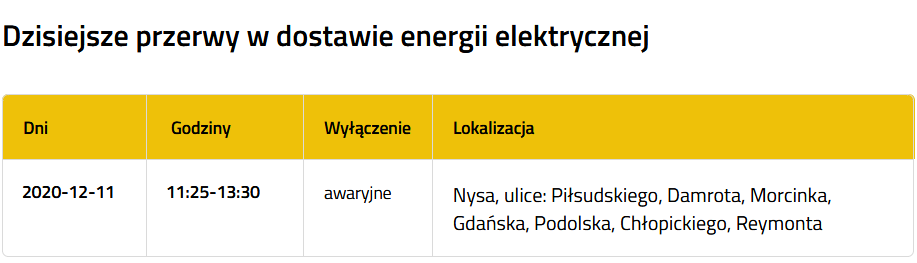 Jak informuje firma Tauron w Nysie doszło do awaryjnego wyłączenia prądu. Energi elektrycznej zostały pozbawione między innymi ulice Piłsudskiego czy Reymonta.