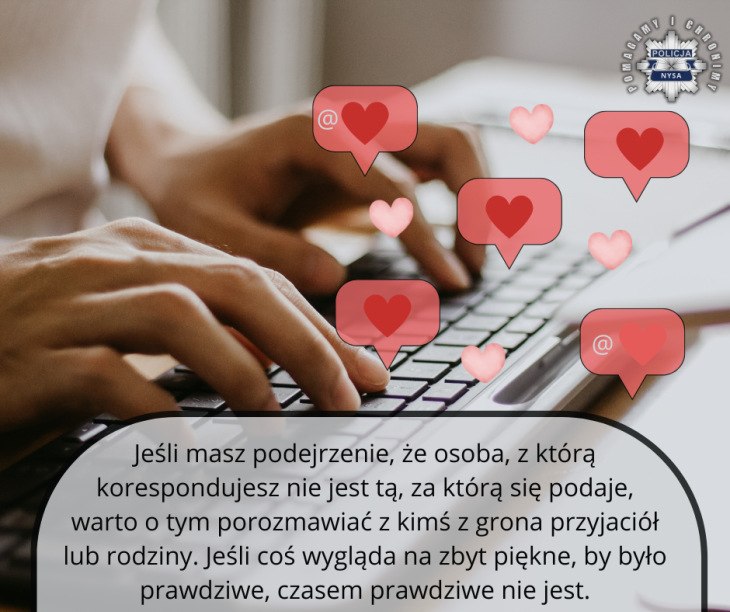 Policja po raz kolejny przypomina o ostrożności w internecie. Warto pamiętać, że internet, choć daje wiele możliwości, niesie za sobą niebezpieczeństwa. Oszuści często wykorzystują emocje i tak szybko jak wyznają uczucia, proszą o “pomoc finansową”.