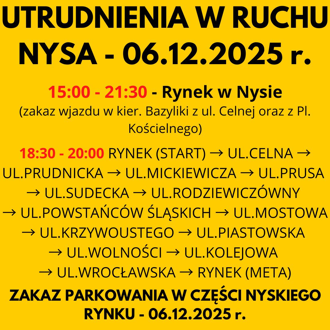 Już jutro startuje V Nocny Mikołajkowy Bieg Nyski! Kierowcy muszą liczyć się z czasowymi utrudnieniami. Ruch na ulicach będzie stopniowo przywracany tuż za ostatnim zawodnikiem oraz pojazdem zamykającym trasę.