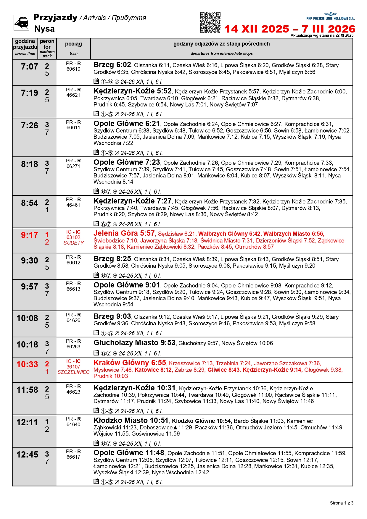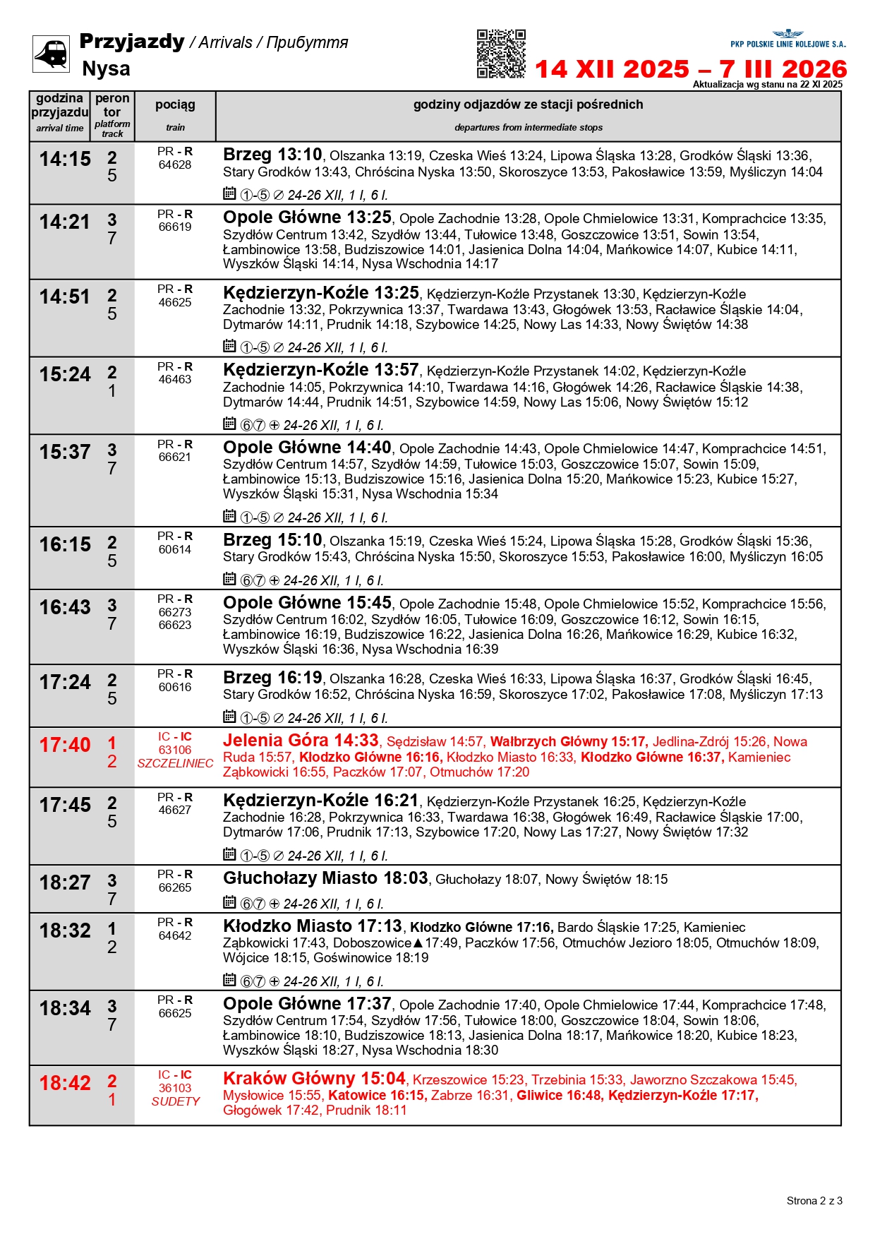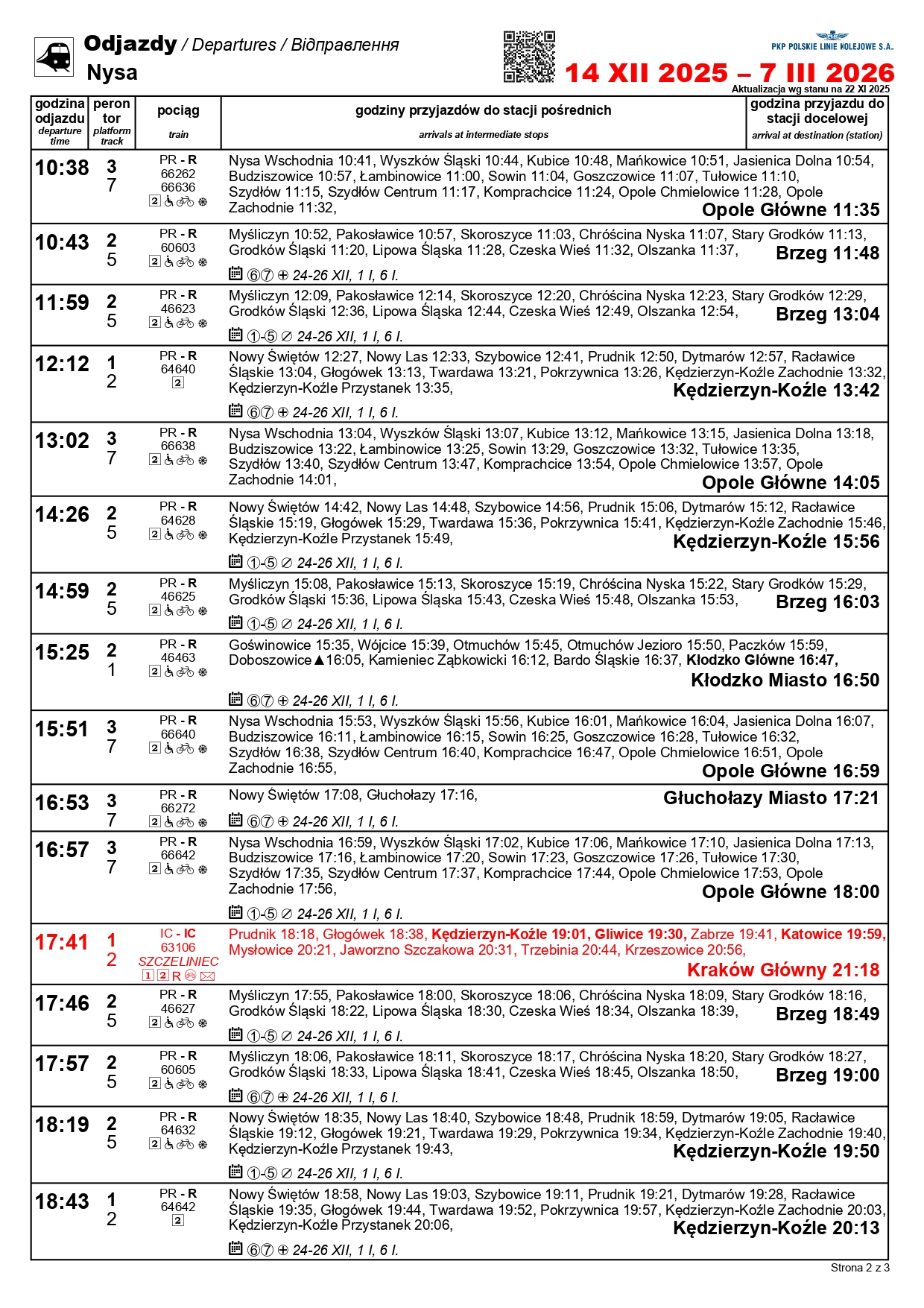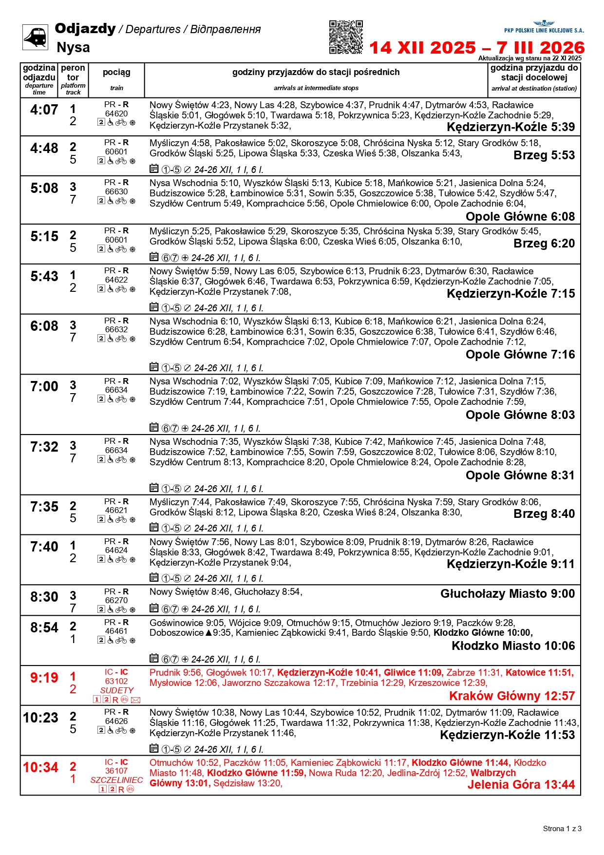 Pasażerów kolei czeka grudniowa korekta rozkładu jazdy. Nowe rozkłady będą obowiązywać od 14 grudnia 2025 do 7 marca 2026 roku.