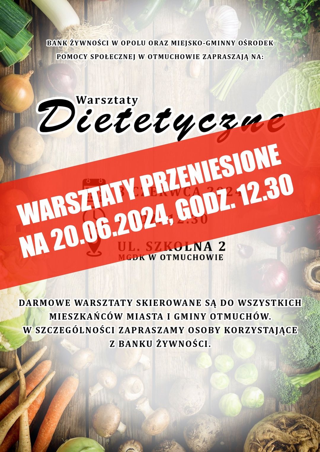 W czwartek 20 czerwca w Miejsko-Gminnym Domu Kultury w Otmuchowie odbędą się warsztaty dietetyczne, organizowane przez Bank Żywności w Opolu oraz Miejsko-Gminny Ośrodek Pomocy Społecznej w Otmuchowie. Początek zajęć zaplanowano na godzinę 12:30.