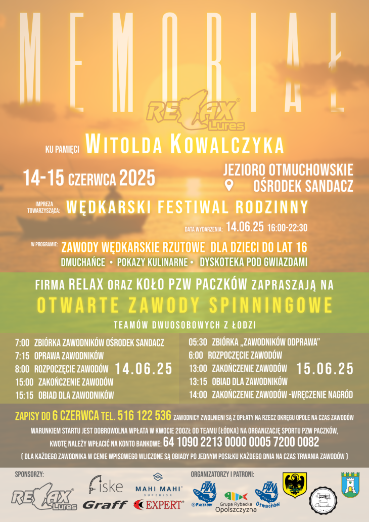 Przed nami memoriał Witolda Kowalczyka, założyciela znanej wędkarskiej marki Relax, który odbędzie się w dniach 14 i 15 czerwca 2025 roku, nad Jeziorem Otmuchowskim.