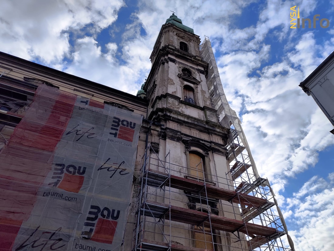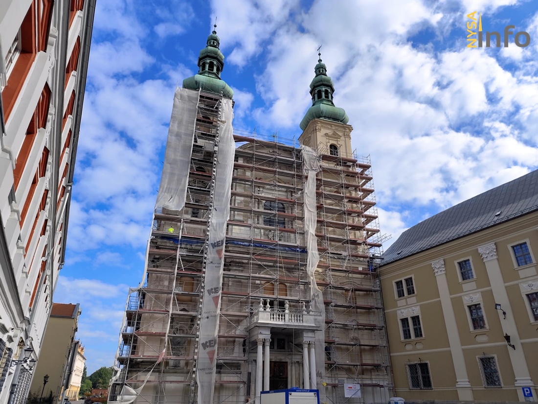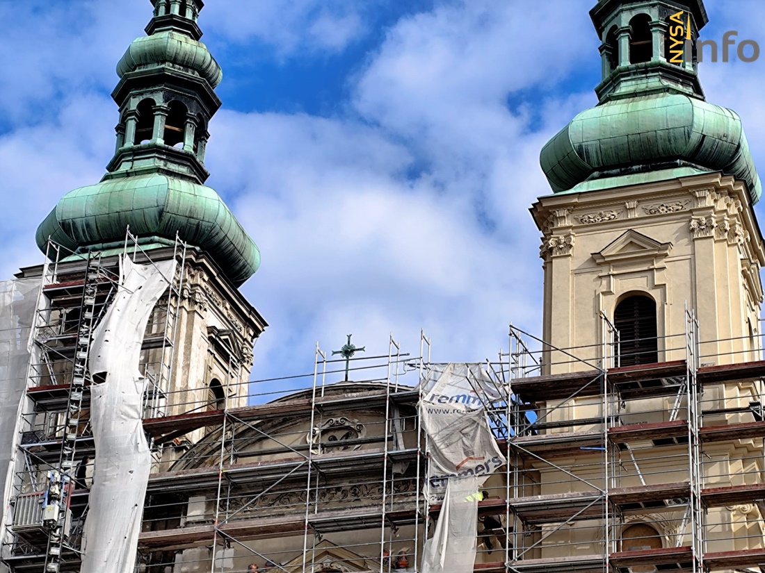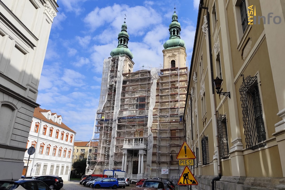 Remont kościoła Wniebowzięcia NMP przy Rynku Solnym w Nysie mocno przyśpiesza. Obecnie rusztowania są rozstawione nie tylko od strony wieżowej fasady ale także od ulicy Grodzkiej, a pomiędzy rusztowaniami widać coraz więcej nowej elewacji.