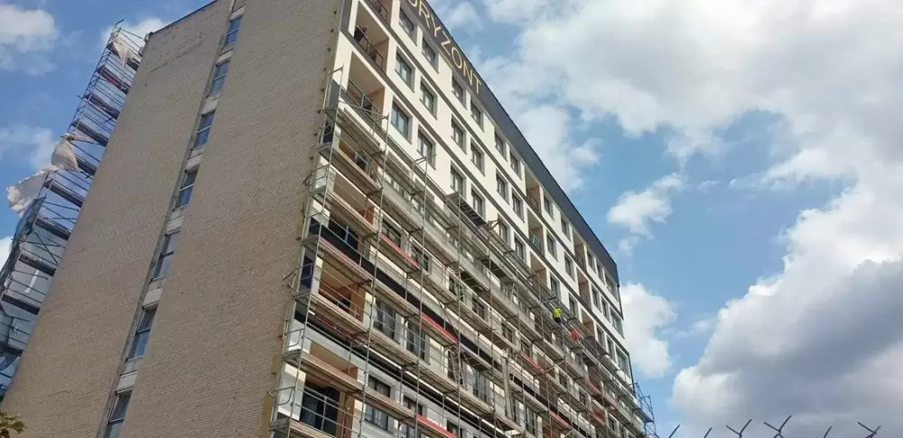 Udostępnij!Biurowiec Zakładu Urządzeń Przemysłowych był pierwszym wysokościowcem w Nysie. Obecnie powstają tam nowe mieszkania, a wieżowiec Horyzont odsłania nowe oblicze. Przypomnijmy, że budynku pod koniec zeszłego roku ruszyła sprzedaż nowych mieszkań. Horyzont To nowoczesny i wyjątkowy budynek mieszkalny w Nysie oferujący piękne widoki na panoramę miasta, sąsiadujące góry i Jezioro Nyskie – informuje inwestor. Łącznie powstanie tutaj 50 mieszkań. Przewidziano kawalerki, mieszkania dwu i trzypokojowe. Dziś po danych elewacjach biurowca ZUP praktycznie nie ma śladu. Budowlańcy odsłaniają ścianę od strony południa. Jeśli jedziemy ulicą Piłsudskiego od Prudnika w stronę miasta to od razu rzuci się nam w oczy jasna elewacja … Czytaj dalej Wieżowiec Horyzont odsłania nowe oblicze