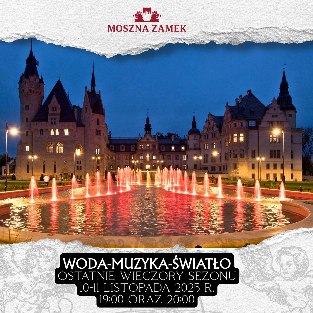 Nie przegap ostatnich pokazów fontann w tym sezonie – już 𝟭𝟬 𝗶 𝟭𝟭 𝗹𝗶𝘀𝘁𝗼𝗽𝗮𝗱𝗮 𝗼 𝗴𝗼𝗱𝘇𝗶𝗻𝗶𝗲 𝟭𝟵:𝟬𝟬 𝗶 𝟮𝟬:𝟬𝟬 – informuje Zamek Moszna.