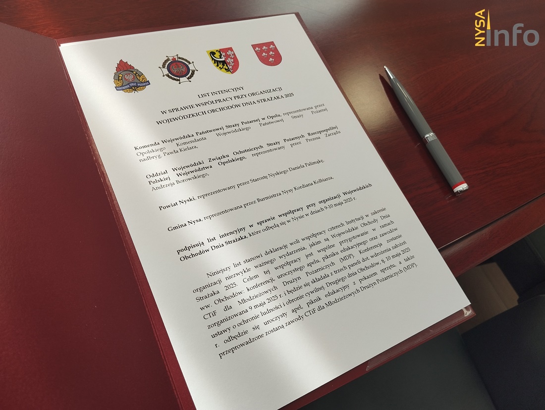 List intencyjny podpisali: Kordian Kolbiarz Burmistrz NysyDaniel Palimąka Starosta Nyski, nadbryg. Paweł Kielar Komendant Wojewódzki Państwowej Straży Pożarnej w Opolu, Andrzej Borowski Prezes Oddziału Wojewódzkiego Związku Ochotniczych Straży Pożarnych Rzeczypospolitej Polskiej Województwa Opolskiego oraz st. bryg. mgr inż. Paweł Gotkowski Komendant Powiatowy Państwowej Straży Pożarnej w Nysie.