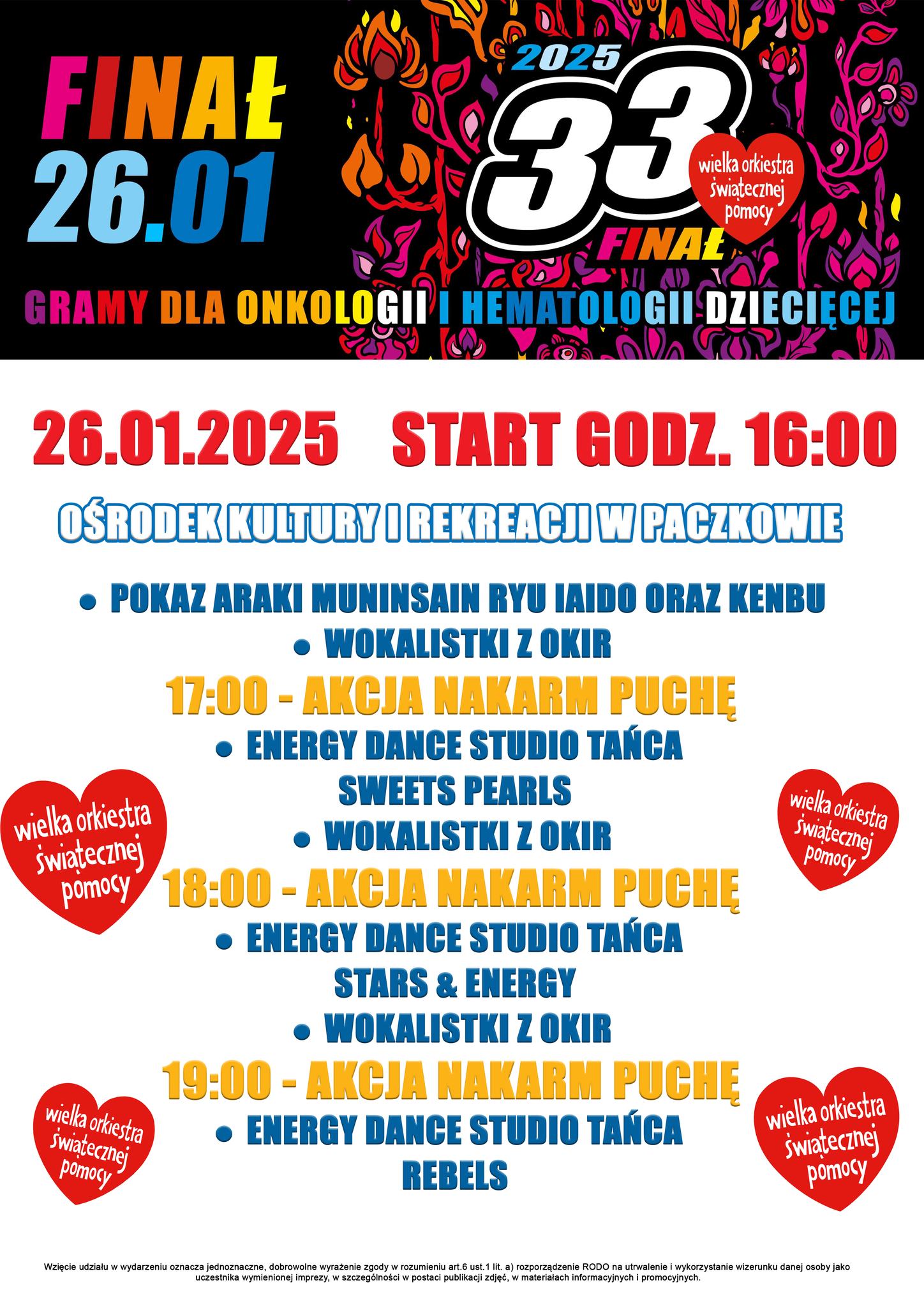 WOŚP gra w Paczkowie. W dniu 26 stycznia paczkowski finał zaplanowano w Centrum Kultury i Rekreacji.