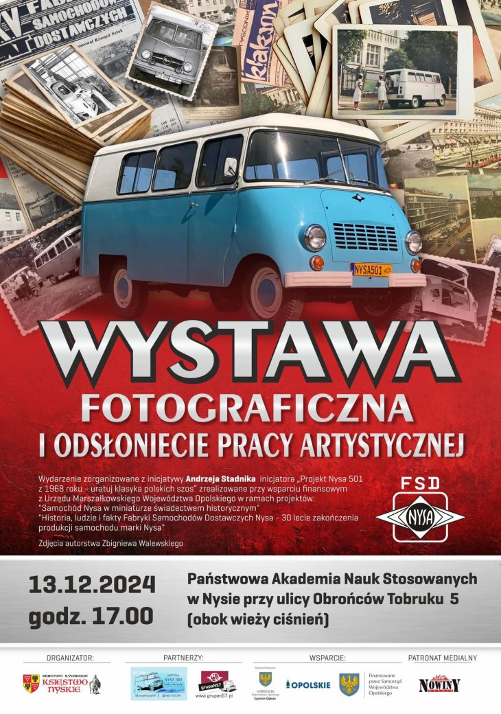 W piątek 13.12.2024 o godzinie 17 :00 na terenie Państwowej Akademii Nauk Stosowanych w Nysie przy ulicy Obrońców Tobruku 5 (obok wieży ciśnień) zaplanowano  wystawę fotograficzną, która będzie połączona z odsłonięciem pracy artystycznej. Na wystawie zobaczymy fotografie z bogatego archiwum Zbigniewa Walewskiego, a inicjatorem wydarzenia jest Andrzej Stadnik.
