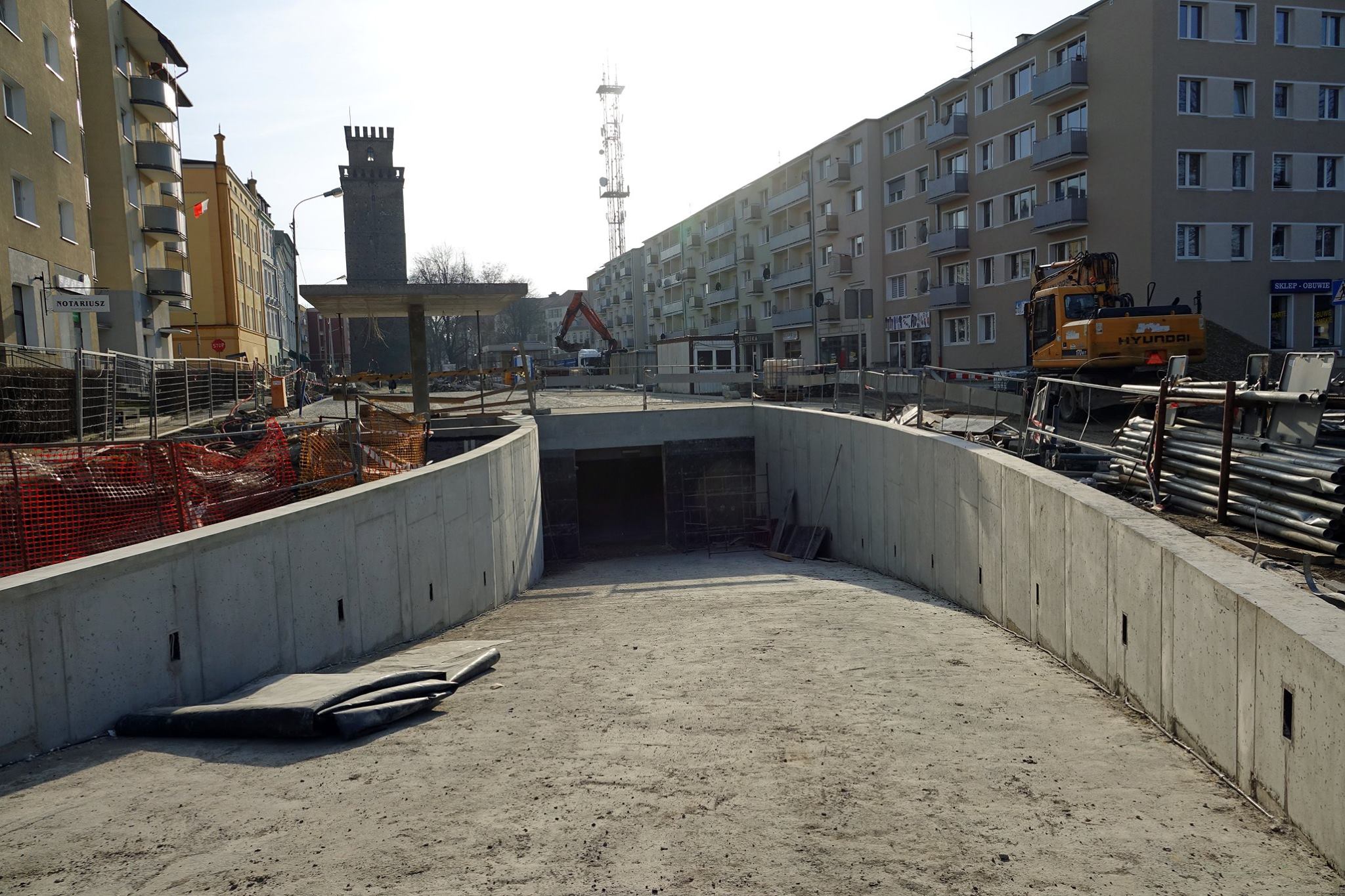 Wciąż trwają prace związane z budową parkingu podziemnego w ciągu ulicy Piastowskiej. Obecnie cały parking jest już przykryty górną płytą i trwają prace wykończeniowe wewnątrz.