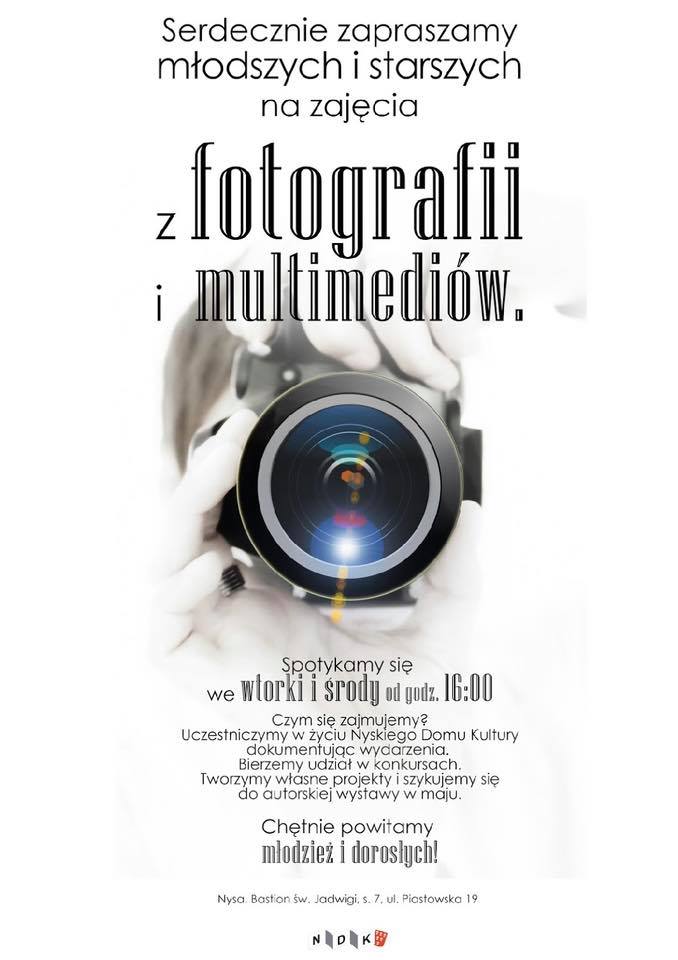 Nyski Dom Kultury organizuje zajęcia z fotografii i multimediów. Zajęcia są przeznaczone zarówno dla tych młodszych i starszych użytkowników. Spotkania odbywają się w bastionie św. Jadwigi we wtorki oraz środy o godzinie 16.