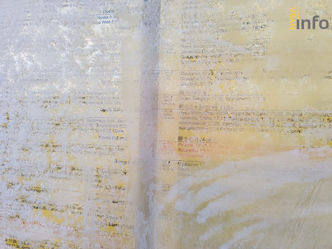 Gdzie można sprawdzić rozkład jazdy pociągów? Oczywiście w internecie, jednak nie każdy ma dostęp do sieci, a na dworcu brakuje nawet rozkładu jazdy… Co prawda rozkład jazdy pociągów znajduje się w peronie pierwszym, jednak nie przykrywa go żadna wiata, a przy takiej pogodzie jak obecnie podróżni muszą się uzbroić w skrobaczkę do szyb.