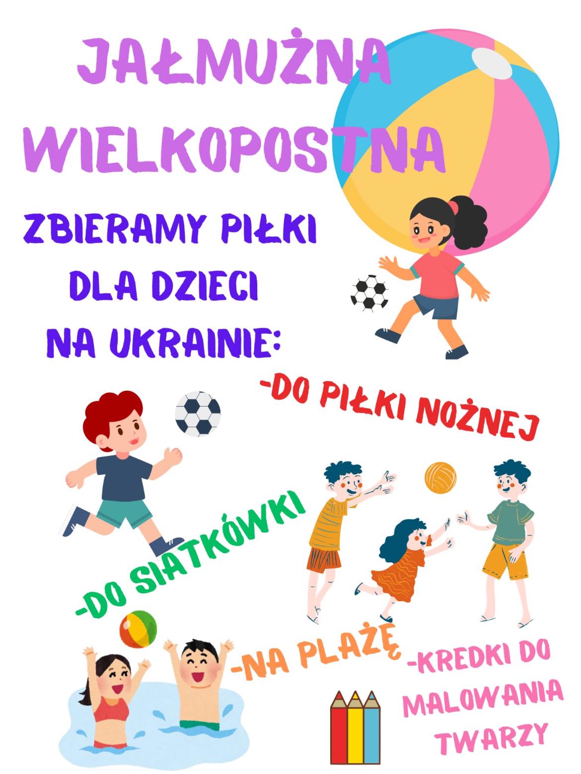 W ramach Jałmużny Wielkopostnej organizujemy zbiórkę piłek i kredek do malowania twarzy na obóz letni dla dzieci organizowany na Ukrainie przez misjonarkę pochodzącą z Nysy s. Doris Gawryjołek SSpS. Piłki i kredki można składać u nauczycieli religii do Wielkanocy – informuje w mediach społecznościowych SP10.