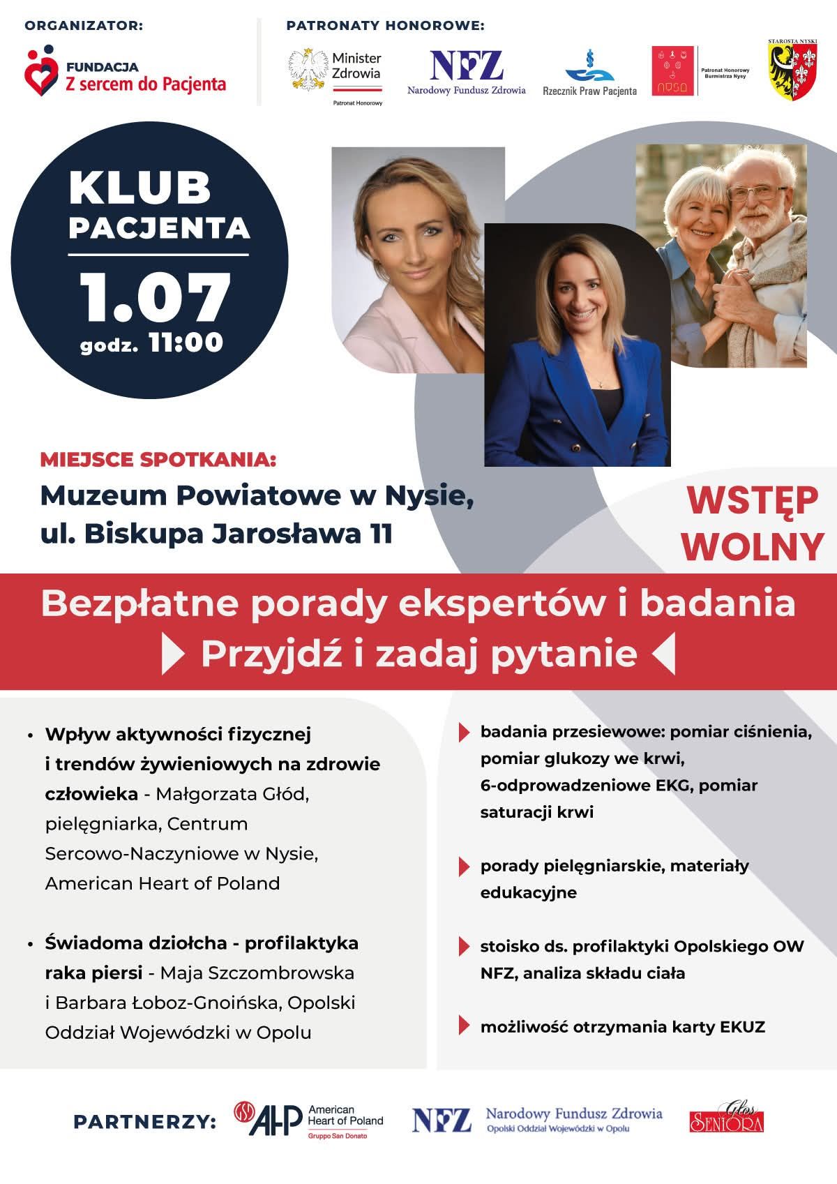 Przed nami kolejna edycja “Klubu Pacjenta”. W Muzeum Powiatowym w Nysie będzie można bezpłatnie skorzystać porad ekspertów oraz badań.