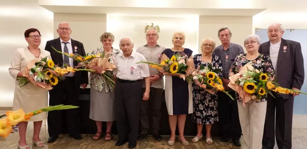 Udostępnij!Każda rodzinna uroczystość jest okazją do świętowania, ale Złote Gody to rocznica niezwykła, tak jak niezwykłe są pary, które przeżyły razem pół wieku. To właśnie ta piękna okazja była powodem spotkania, jakie odbyło się w sobotę, 15 lipca w Urzędzie Miejskim w Nysie. Uroczystego aktu wręczenia medali „Za Długoletnie Pożycie Małżeńskie” dokonał Burmistrz Nysy Kordian Kolbiarz. Medale przyznawane są przez Prezydenta RP i stanowią nagrodę dla osób, które przeżyły co najmniej 50 lat w jednym związku małżeńskim. Te wspólne 50 lat zasługuje na podziękowania za godne i długie pożycie małżeńskie oraz za piękny przykład dla młodego pokolenia. Oprócz medali Jubilaci … Czytaj dalej Złote Gody w USC