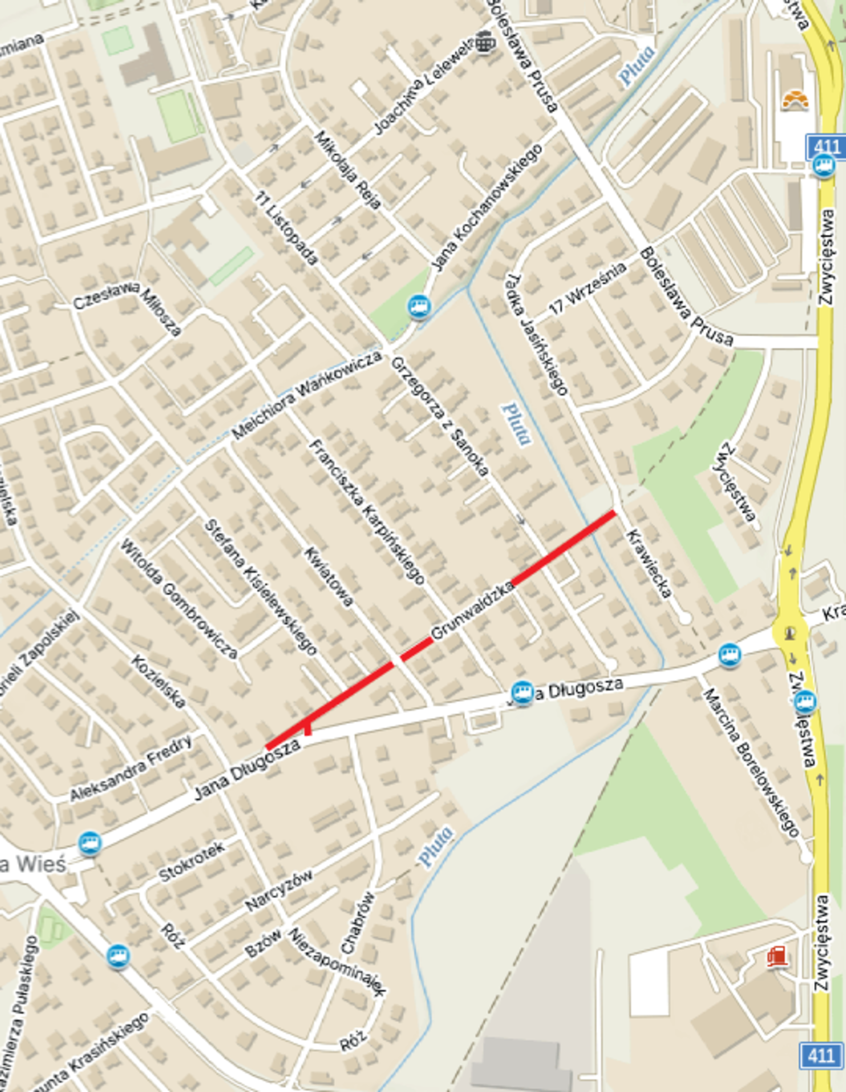 Odcinek ul. Grunwaldzkiej od skrzyżowania z ul. Kwiatową do ul. Grzegorza z Sanoka objęty zostanie strefą ograniczonej prędkości do 30 km/h. W ramach nowej organizacji ruchu wszystkie skrzyżowania na wskazanym obszarze staną się skrzyżowaniami równorzędnymi. Oznacza to, że pierwszeństwo przejazdu będzie wynikać z zasady prawej ręki – pierwszeństwo ma pojazd nadjeżdżający z prawej strony.